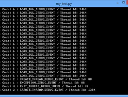 print "Event Code: %d Thread ID: %d" % \ (debug_event.dwDebugEventCode,debug_event.dwThreadId)